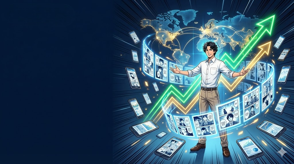 私がMangaTellを立ち上げた理由は、単にマンガを作りたいからではありません。 ビジネスという「構造」に、マンガという「命」を吹き込み、世界中の誰にでも一瞬で伝わる形へ「翻訳」するためです。
